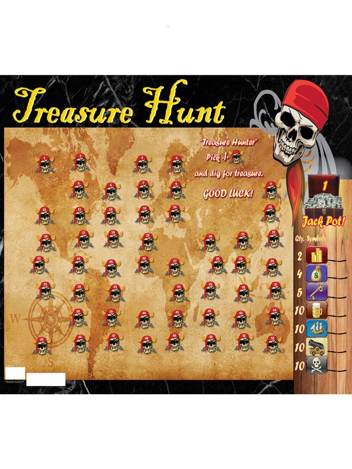 TREASURE HUNT BOARD CT NLS (0) No Reviews yet Pinit $320.00 Quantity discounts available QuantityPrice Item name/number: TREASURE HUNT BOARD USTH52 UPC: 387973 Denomination: 1.00# of Pulls: 1Deals per Case: 1 Quantity -+ Add to Cart Login and license verification are required for purchase of this product. Click here to contact Customer Service with any questions about regulated products. Reviews 0 BackRatings & ReviewsNo reviews availableBe the first to Write a Review